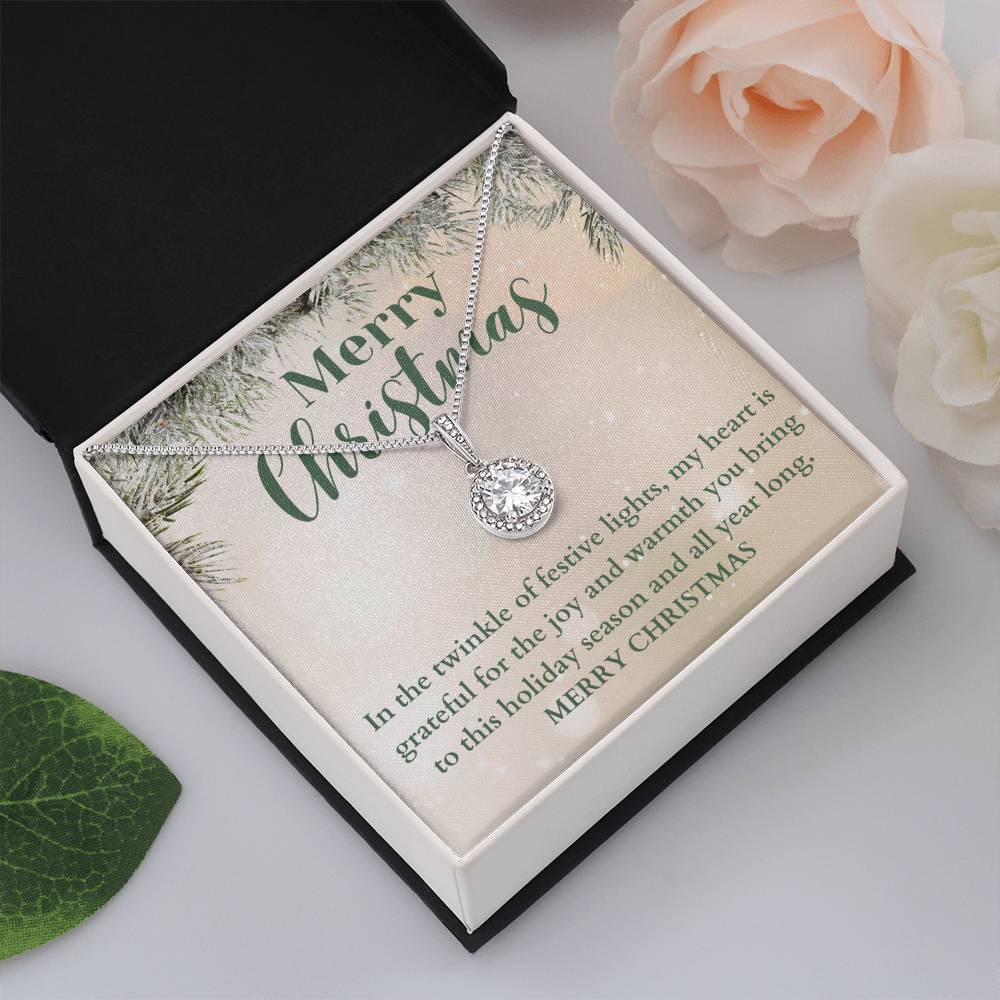 "In the twinkle of festive lights, my heart is grateful for the joy and warmth you bring to this holiday season and all year long. MERRY CHRISTMAS."